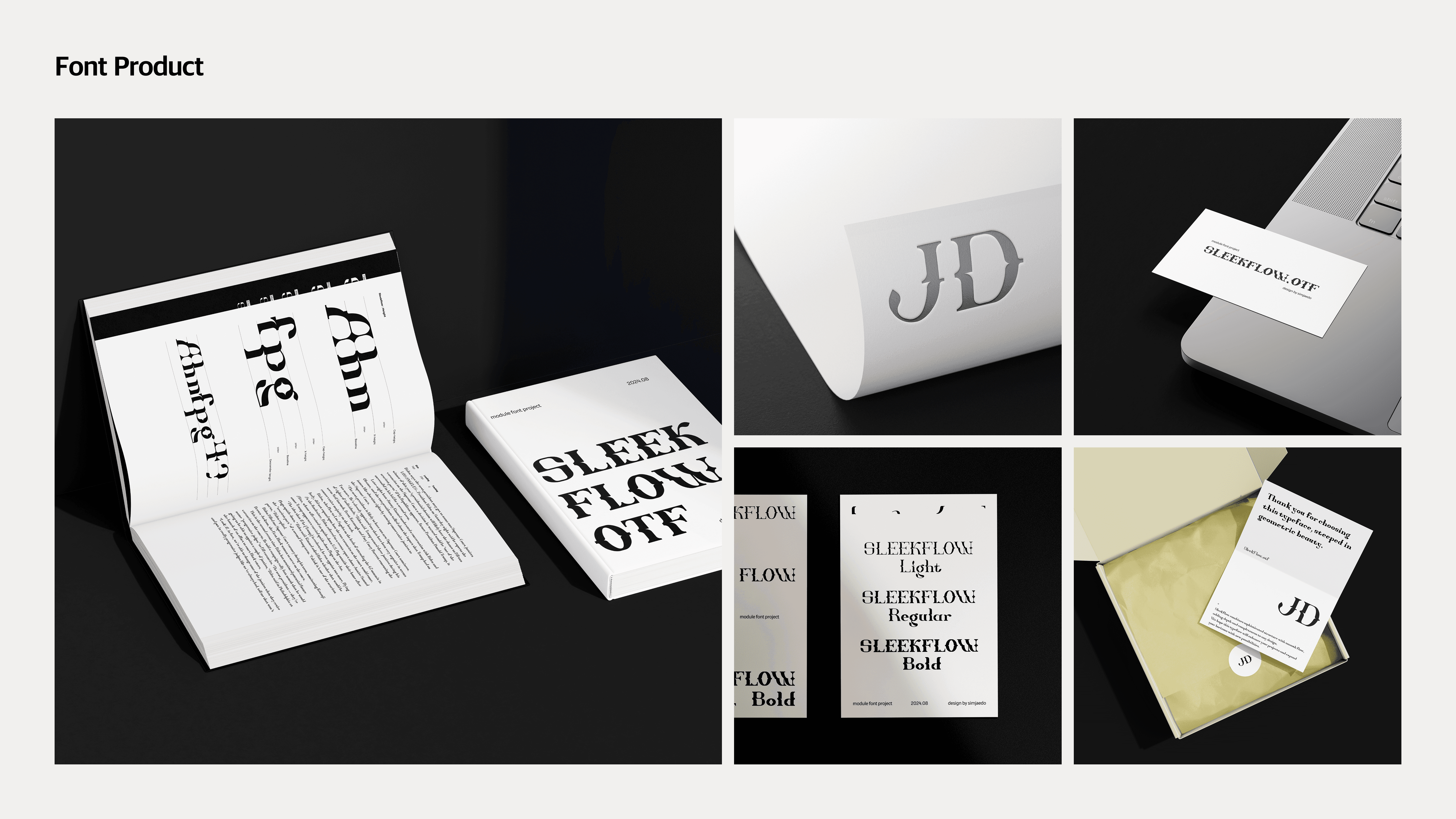 형태를 이루는 최소 단위를 모듈로 제작해, 타입페이스의 형태를 조립한 프로젝트입니다. 보더니(Bodoni) 폰트의 극단적인 대비감이 주는 인상에 영감을 받아, 보더니 폰트의 형태를 해체하여 모듈로 재정립했습니다. 조형 안에서 판독성과 개성을 동시에 살피며, 개성적인 인상을 남기는 폰트를 제작했습니다.